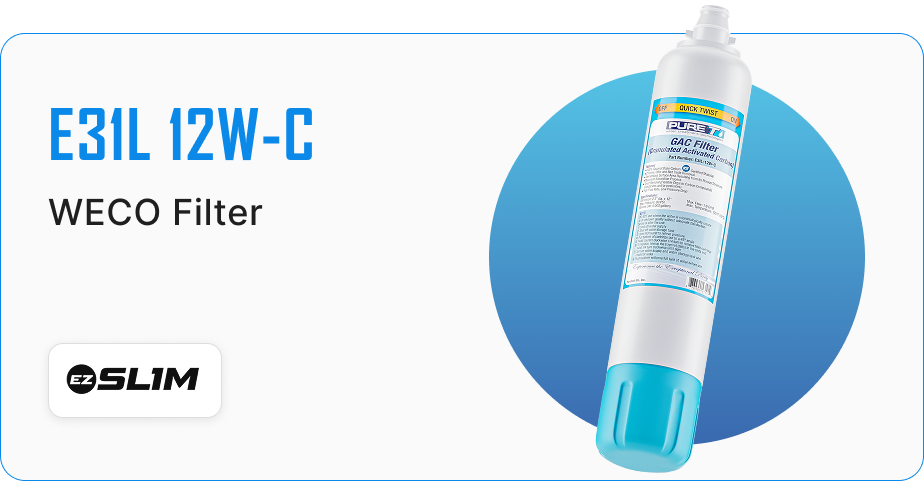 The reverse osmosis membrane is NSF-certified and features outstanding efficiency. Other reverse osmosis filters can waste up to 10 gallons of water for every gallon of pure water made. Just like our own WECO RO systems, the PureT EZ Slim high-performance RO membrane produces only four gallon of waste water for each gallon of purified water. This saves you money, reduces waste water, conserves resources and helps the environment. For the final stage of purification the water flows through granular activated carbon (GAC) in-line post filter. This acts as a polishing filter, removing any traces of tastes, odors or gasses, for crystal clear, sparkling drinking water.