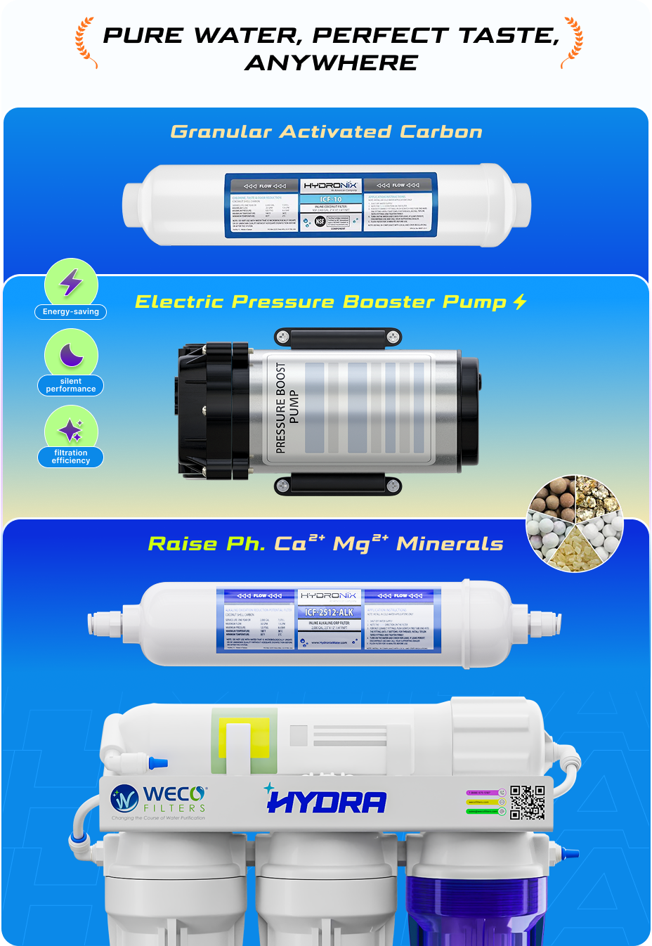WECO HYDRA-75ALKPMP Reverse Osmosis Drinking Water Filtration System with pH Neutralizer Cartridge and Booster Pump