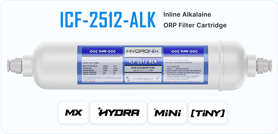 ICF-2512-ALK-QC Inline Alkaline/ORP Filter Cartridge with Quick Connect Fittings for Reverse Osmosis Water Purification Systems