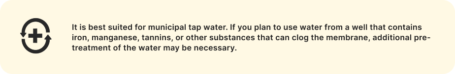- Recommended for city water. Pre-treatment may be required for well water with iron, manganese, tannins and other membrane fouling contaminants.
